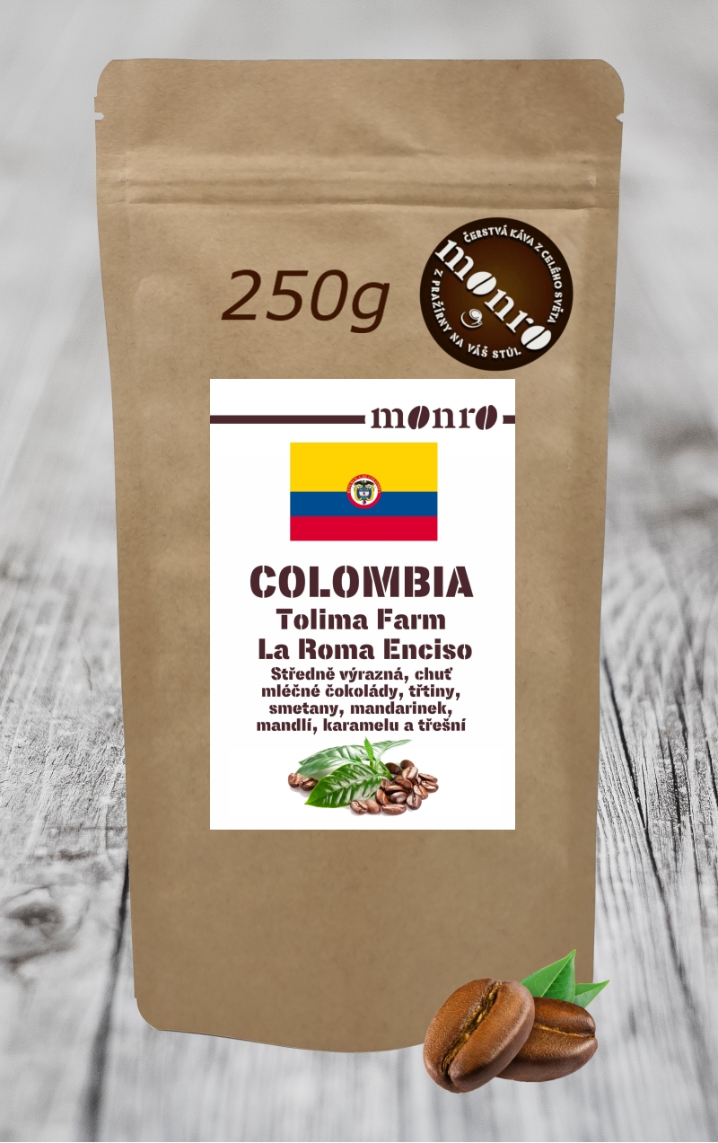 Tato speciální káva z oblasti Tolima v Kolumbii je plná chuti, překypující tmavě červenými tóny bobulí a mléčné čokolády. Tato šarže pochází od skupiny farmářů z města Planadas v oblasti Tolima v Kolumbii a je zpracována na špičkové farmě zvané La Roma, která se vyznačuje pokročilými technikami fermentace a zpracování.
