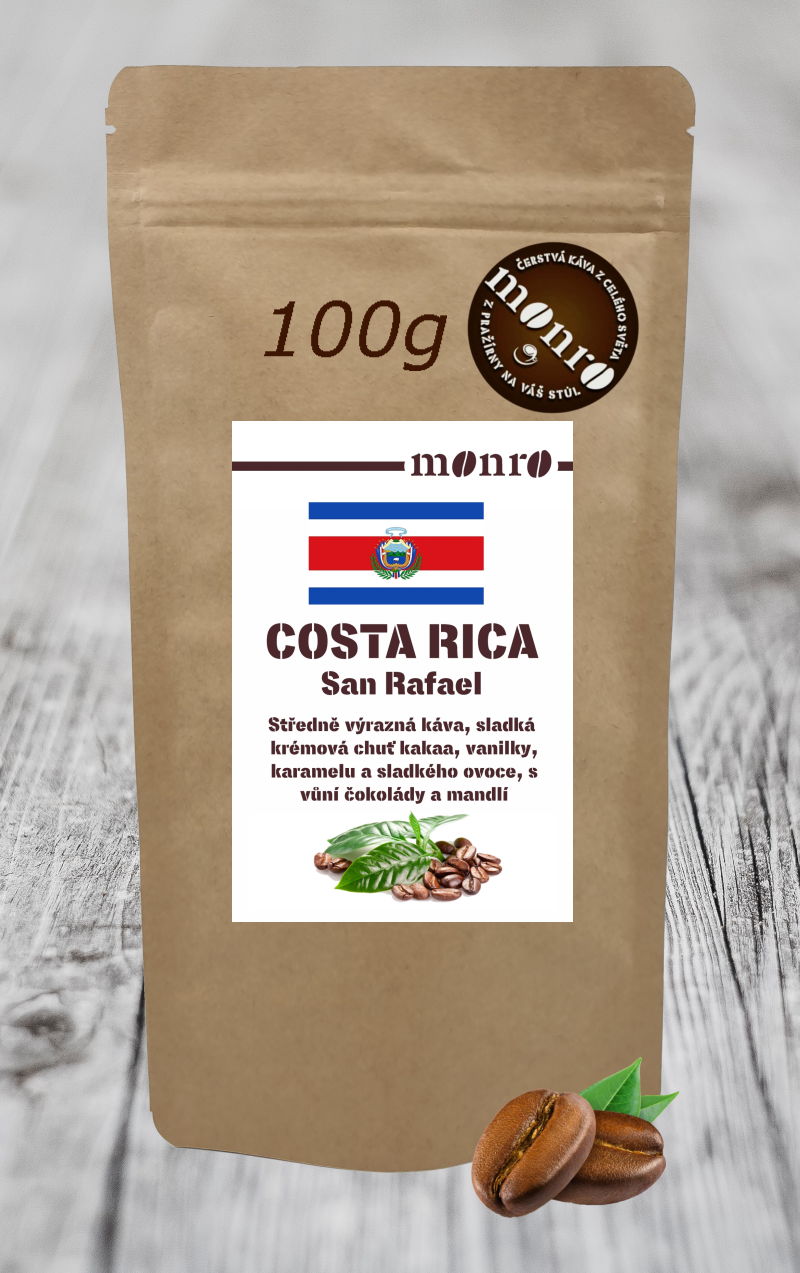 Kostarické kávy Arabiky jsou u našich zákazníků velmi oblíbené, pro svou chuť a vysokou kvalitu. Káva San Rafael je oblíbená zejména u žen pro svou delikátní sladkou, smetanovou chuť a vůni čokolády, mandlí a vanilky.