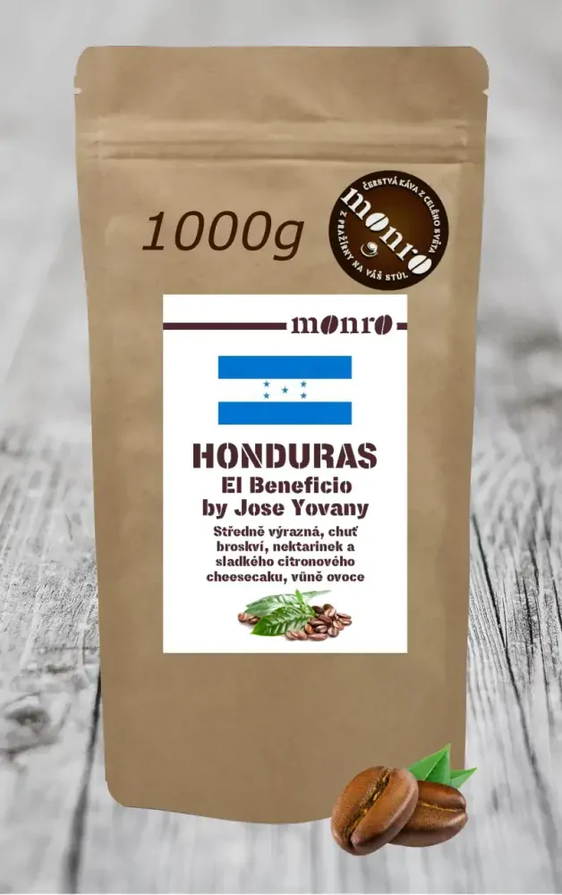Čerstvě pražená 100% výběrová Arabica Honduras El Beneficio by Jose Yovany je Excelent Arabika s hodnocením 87SCA. Hotová káva s úžasnou chutí broskví, nektarinek a sladkého citronového cheescaku s nádhernou vůní sladkého ovoce a čokolády.
