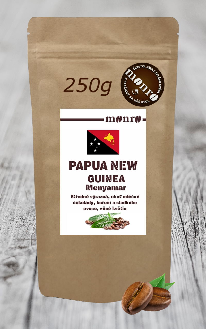 Skvělá čerstvě pražená kávavýběrová 100% Arabika Papua New Guinea Menyamar je káva středně výrazná s plným a strukturovaným tělem. Čiré tóny mléčné čokolády s nádechem koření se spojují se sladkostí sušeného ovoce.